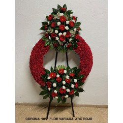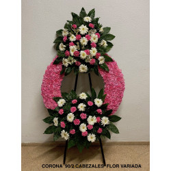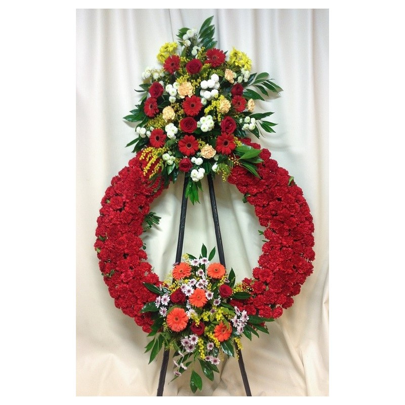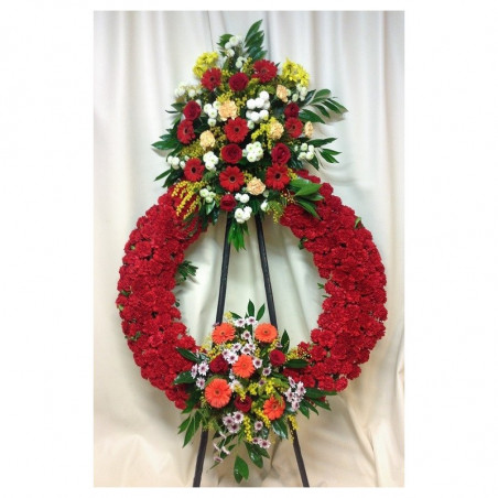Corona de difuntos elaborada al máximo detalle con una cuidada selección de flores frescas recién cortadas.